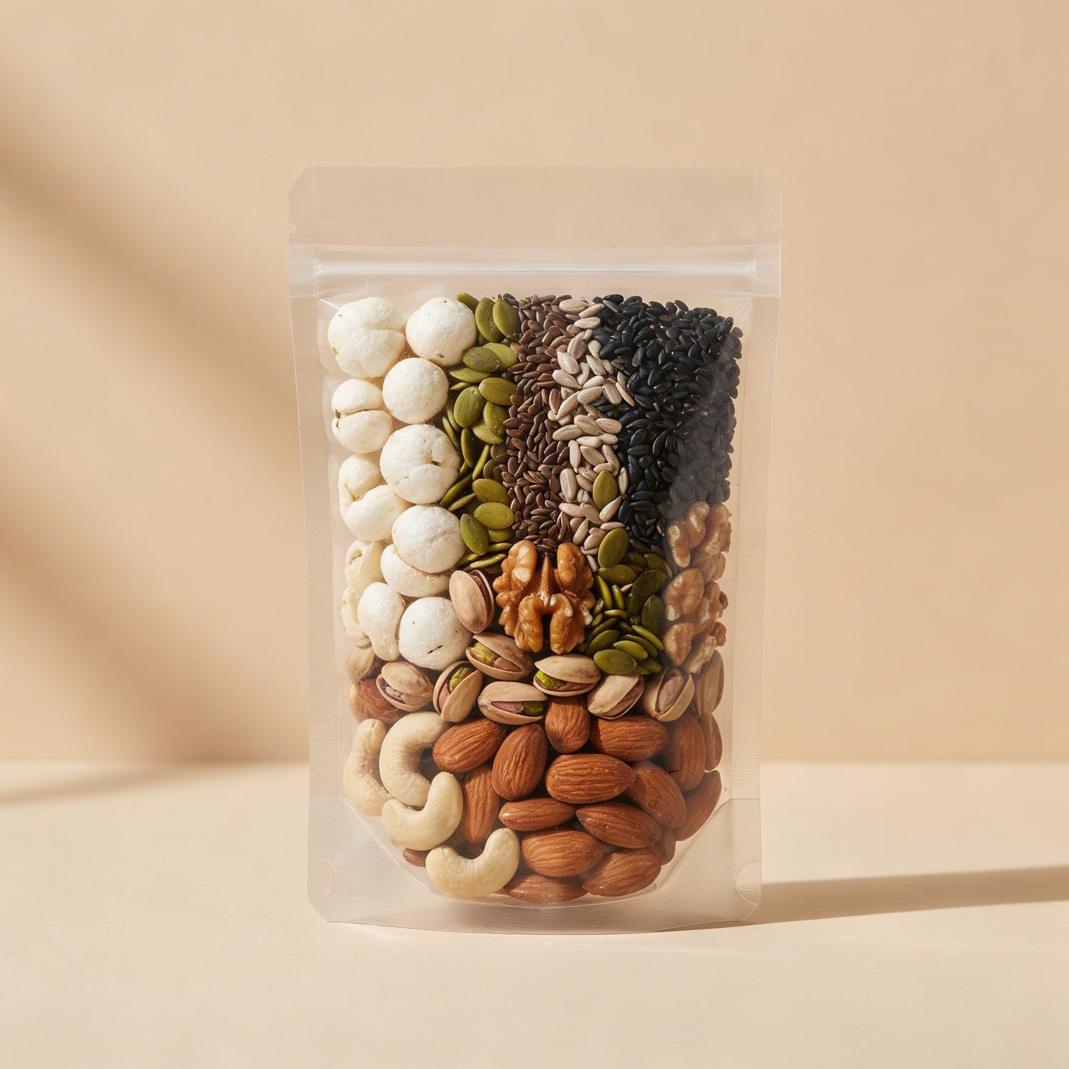 Made with carefully selected almonds, cashews, walnuts, pistachios, makhana, and nutrient-rich seeds, with no added sugar, salt, preservatives, or additives. Just pure, wholesome goodness.