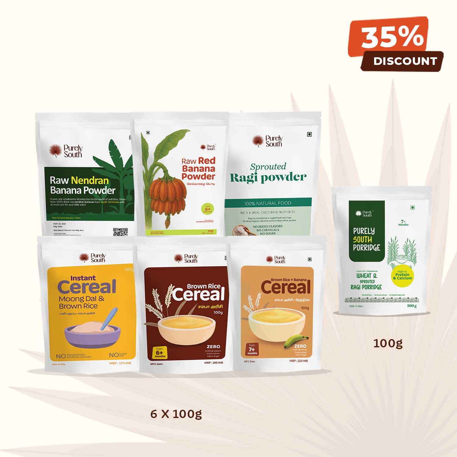 - Brown Rice & Nendran Banana Cereal: Brown Rice (Samba Rice), Raw Nendran Banana.